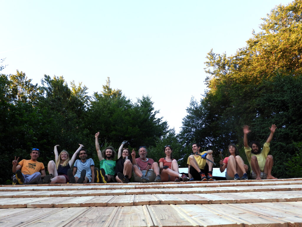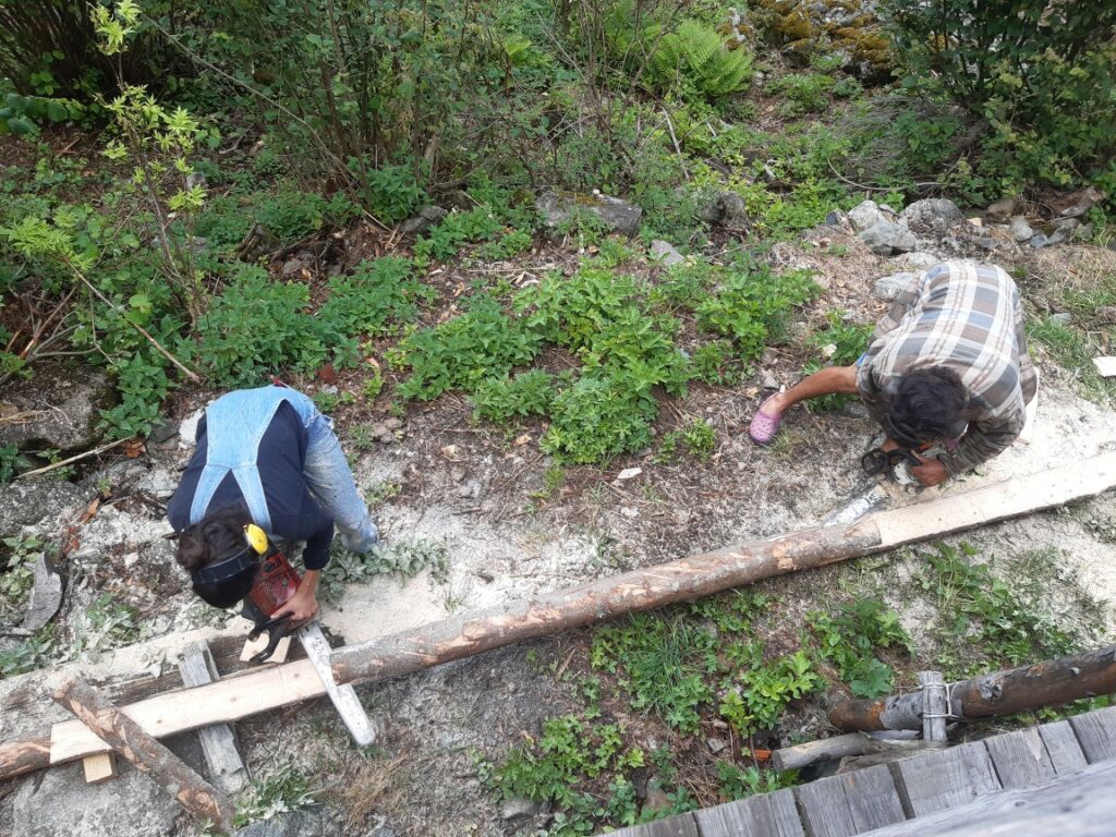 • Débit et clouage à la main des nouvelles planches de mélèze ;