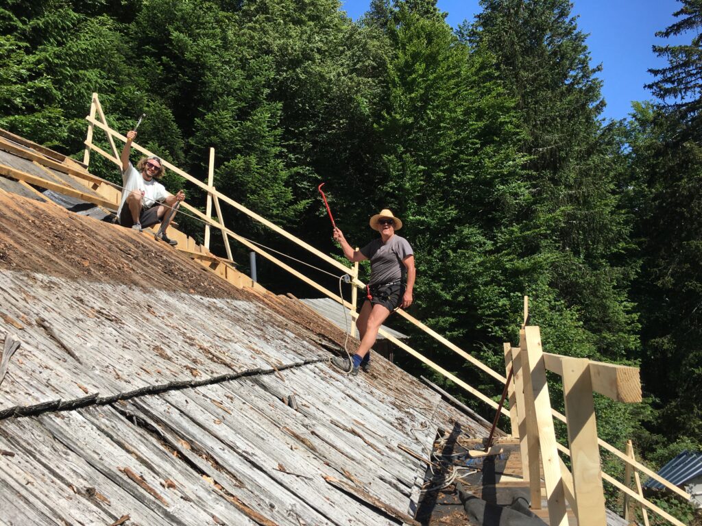 Travaux : Restauration de la couverture en bardeaux de mélèze au chalet de La Morte