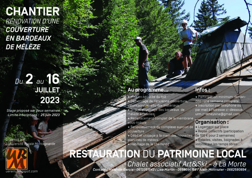 Le chantier-école proposé ici par l’URM a porté sur la restauration de la couverture en bardeaux de mélèze du chalet de La Morte. Les étapes de dépose et repose ont été les suivantes :